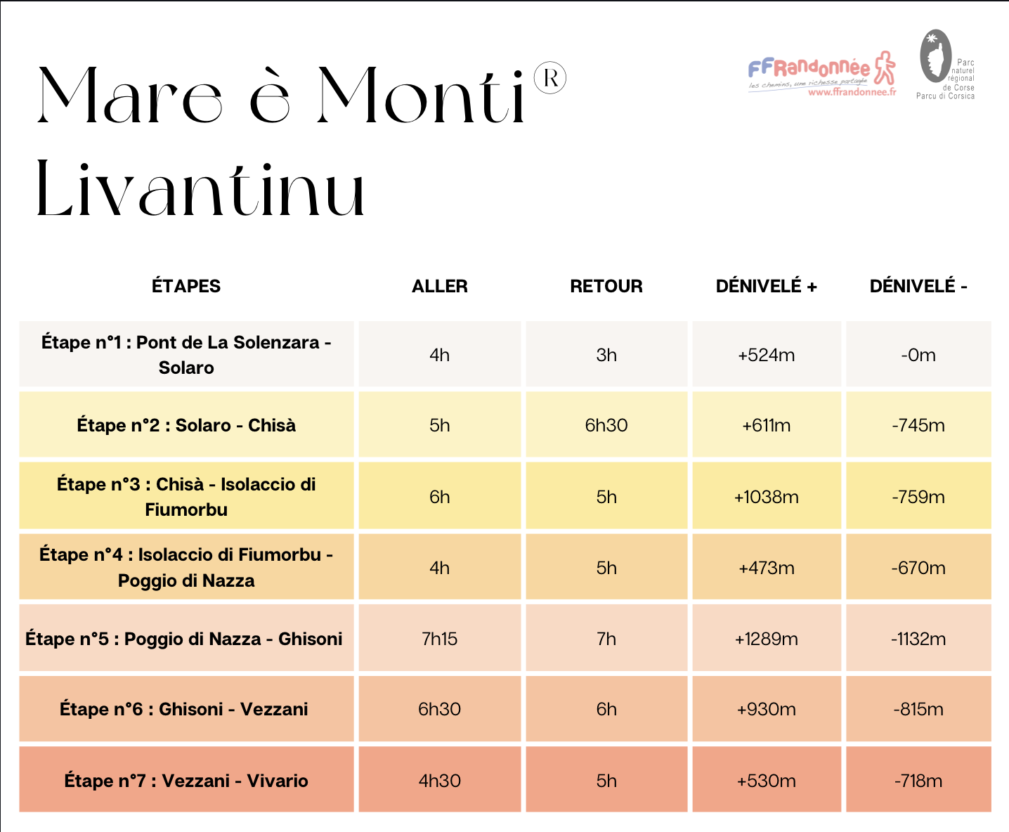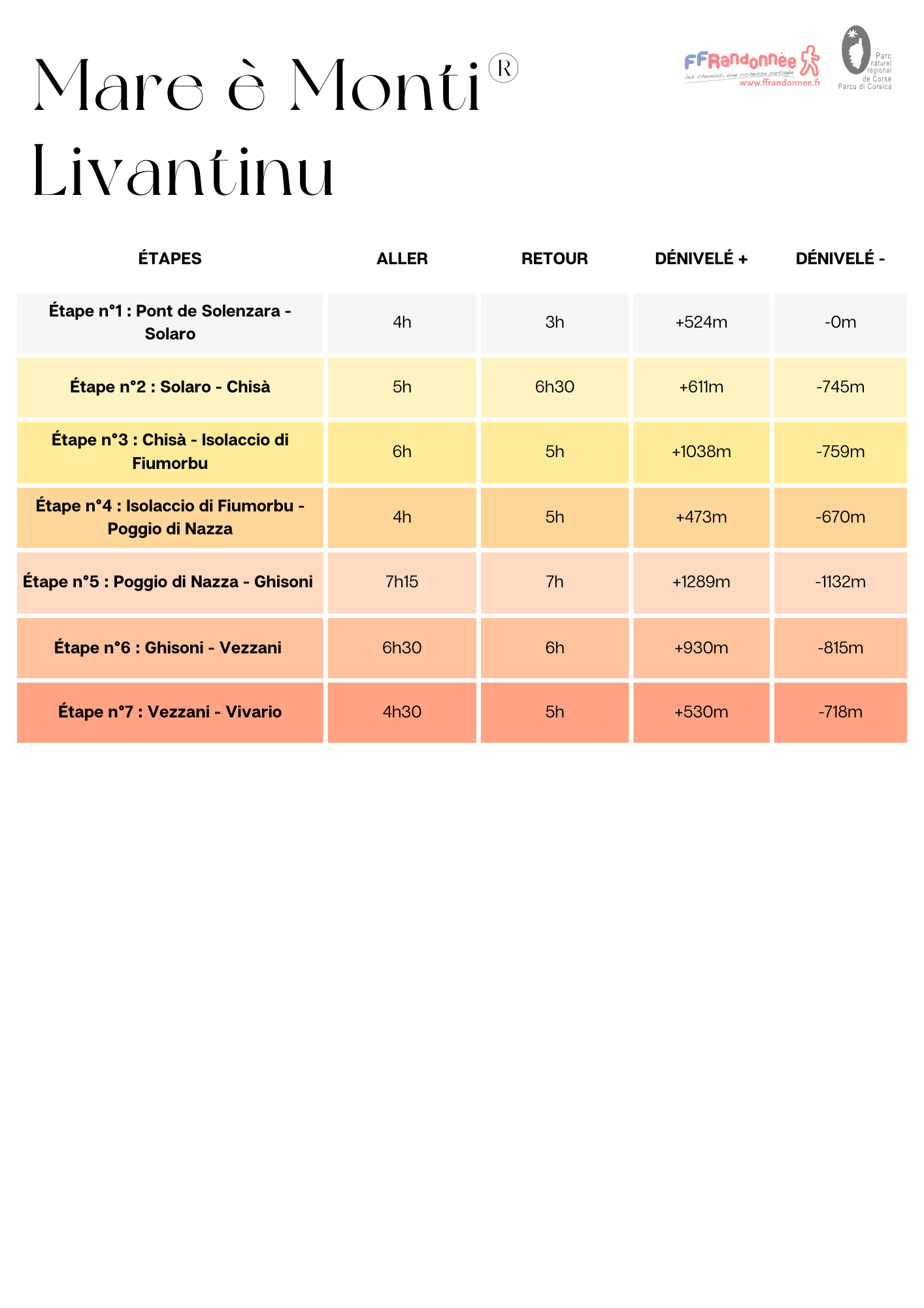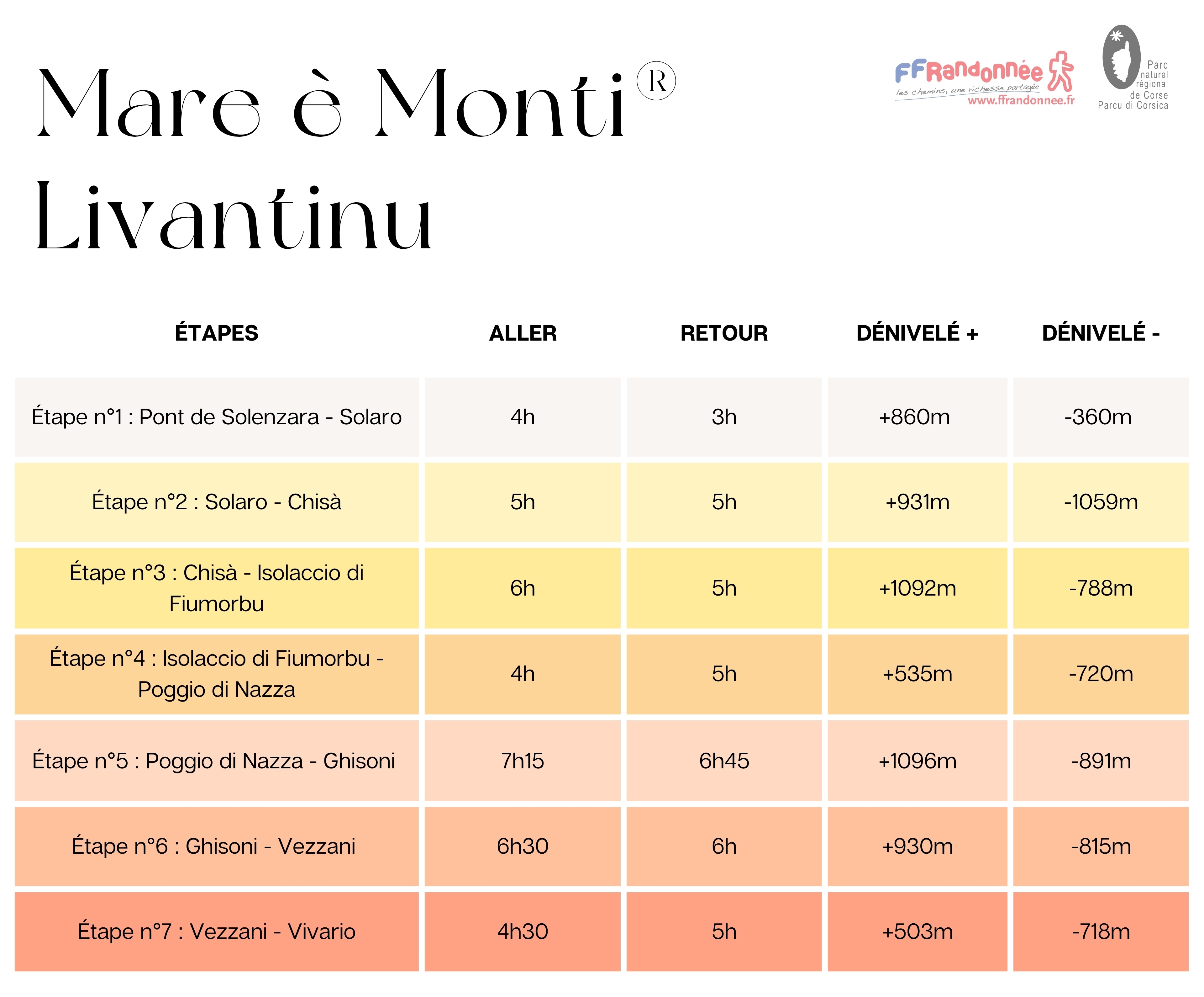 - Etapes de 4h à 6h30 environ